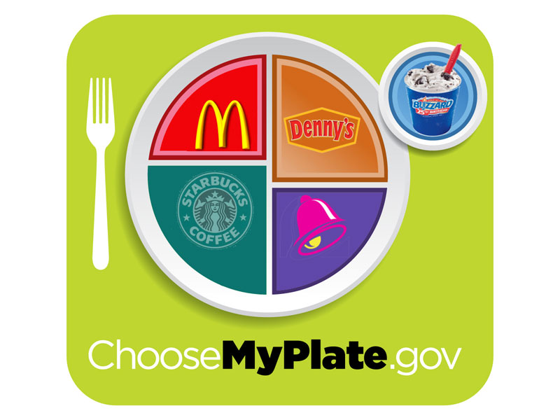 In the center of the circle is the U.S. Department of Agriculture (USDA) MyPlate, representing the “Five Food Groups” (Fruit, Vegetables, Grains, Protein, and Dairy). It promotes low-fat or fat-free. The only advantage it has over the SAD is that high carbs and high fat will not be eaten together.
