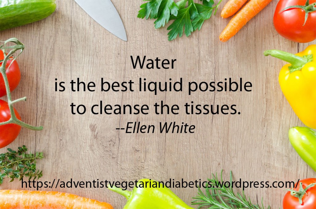 Sister Ellen also advises water to be drunk a half hour before and after meals. So, if we as diabetics are drinking water freely throughout the day, we probably will drink water a half hour before meals. And a half hour after meals, too!
